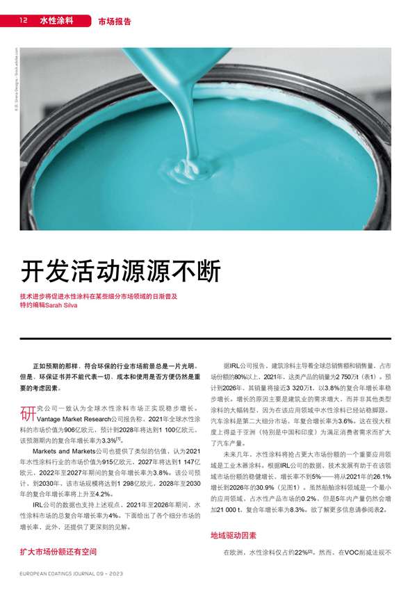 摘要:技術進步將促進水性涂料在某些細分市場領域的日漸普及