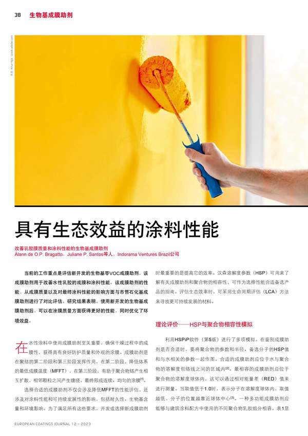 改善乳膠膜質量和涂料性能的生物基成膜助劑