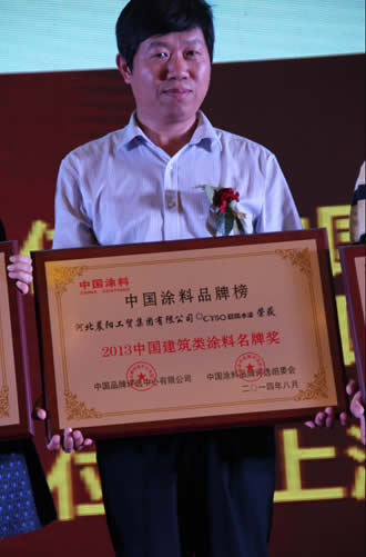 晨陽(yáng)集團(tuán)副總裁花東栓代表晨陽(yáng)領(lǐng)取中國(guó)建筑類涂料名牌獎(jiǎng)