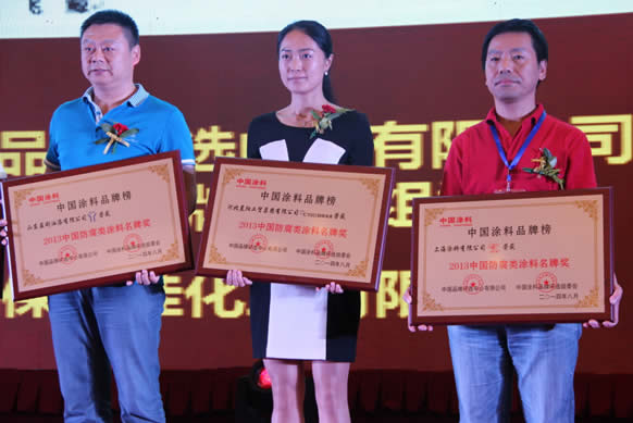 晨陽(yáng)集團(tuán)總裁助理呂秋紅代表晨陽(yáng)集團(tuán)領(lǐng)取中國(guó)防腐類涂料名牌獎(jiǎng)