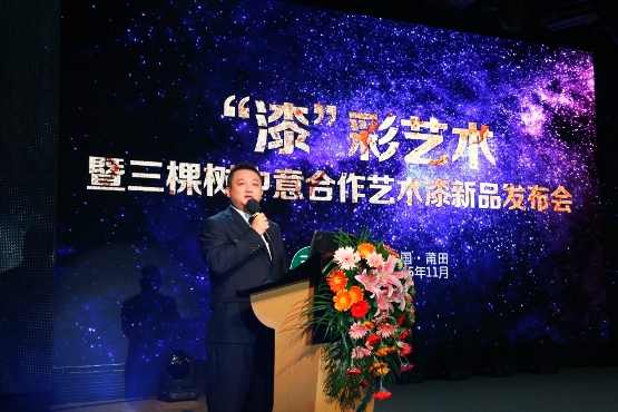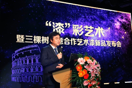 發布會上,中科院廣州化學研究所副所長、三棵樹技術中心副總裁李校華致辭。他表示,隨著社會發展,人們越來越注重墻面色彩和裝飾效果帶來的精神享受,藝術漆也因此成為裝飾涂料的又一新寵。順勢而為,三棵樹攜手歐洲藝術漆領導品牌意大利圣馬可集團進行強強聯手,引進意大利高端藝術漆,打造類型多樣,獨具特色的新型內墻藝術裝飾產品,將掀起一場由藝術帶來的財富狂潮。