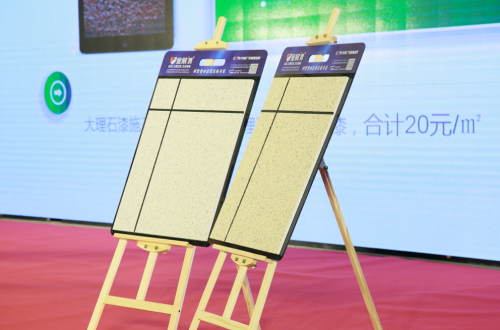 呼應會議的核心主旨,金展涂料鴻針對2019年的市場情況,在會上隆重推出了全新砂包砂大理石漆,屬行業首推。金展鴻大理石漆為CCTV央視展播品牌,單平米造價低,效果可媲美天然原石,莊重氣派,施工非常方便,可噴涂可批刮,特別適合工裝,大工地使用,產品管用長達五十年。會議還特別介紹了金展鴻新材料集團旗下澳芙高端生態藝術壁材,在量身定制、協助施工、施工培訓專業一條龍服務的護航下,其能使居室空間完美展現意大利藝術與新時代個性潮流風格。