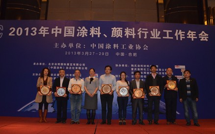 2013年3月28日晚,由北京涂博國(guó)際展覽有限公司聯(lián)合《中國(guó)涂料》雜志社有限公司和《消費(fèi)日?qǐng)?bào)》社名牌產(chǎn)品宣傳保護(hù)中心共同舉辦的“2011中國(guó)最受下游用戶歡迎的涂料涂裝品牌”及“2011中國(guó)涂料行業(yè)十大風(fēng)云人物”CCTOP10授牌典禮也在此隆重舉行。