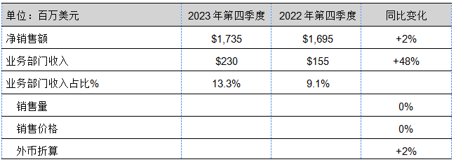 2023年第四季度各業(yè)務(wù)部門業(yè)績表現(xiàn)