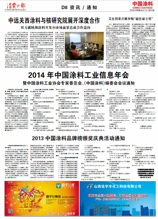 2014年中國涂料工業信息年會暨中國涂料工業協會專家委員會、《中國涂料》編委會會議通知
