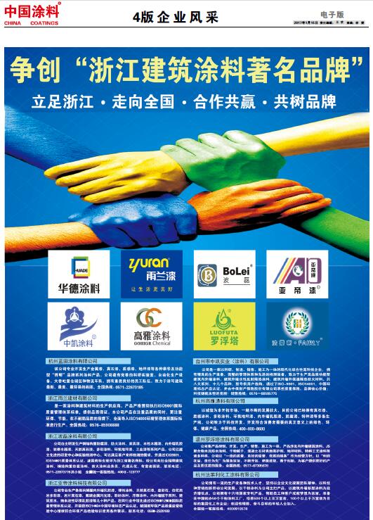 《中國涂料報》(電子版)的一切內容(包括但不限于文字、圖片、PDF、圖表、標志、標識、商標、版面設計、專欄目錄與名稱、內容分類標準以及為讀者提供的任何信息)僅供中國涂料信息網讀者閱讀、學習研究使用,未經中國涂料雜志社有限公司及/或相關權利人書面授權,任何單位及個人不得將《中國涂料報》(電子版)所登載、發布的內容用于商業性目的,包括但不限于轉載、復制、發行、制作光盤、數據庫、觸摸展示等行為方式,或將之在非本站所屬的服務器上作鏡像。否則,中國涂料雜志社有限公司將采取包括但不限于網上公示、向有關部門舉報、訴訟等一切合法手段,追究侵權者的法律責任。