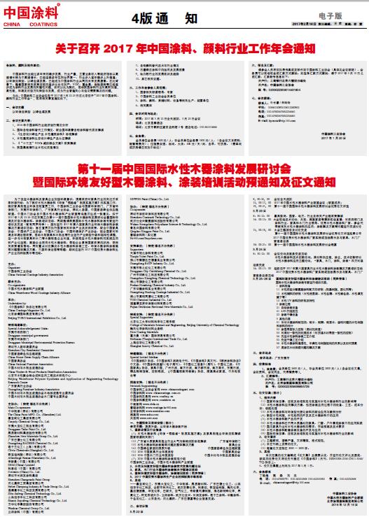 關于召開2017年中國涂料、顏料行業工作年會通知