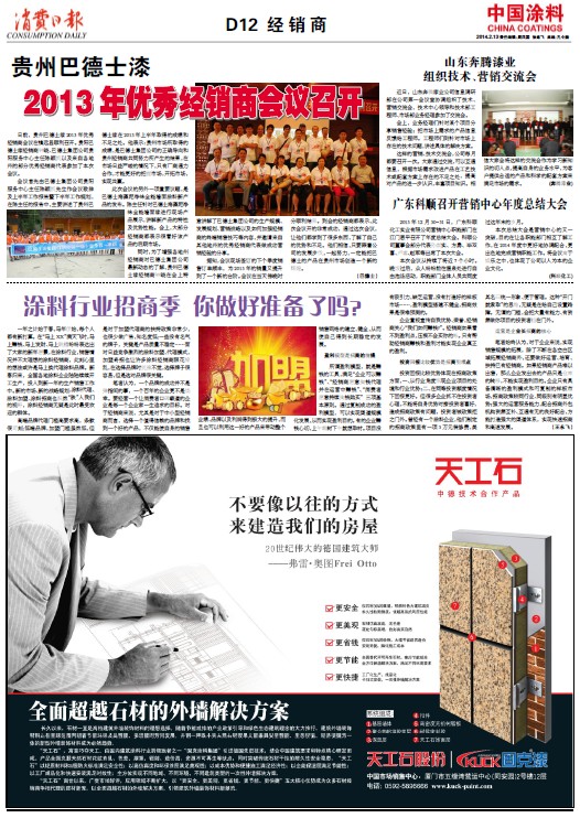 中國涂料報 2014年2月13日 星期四