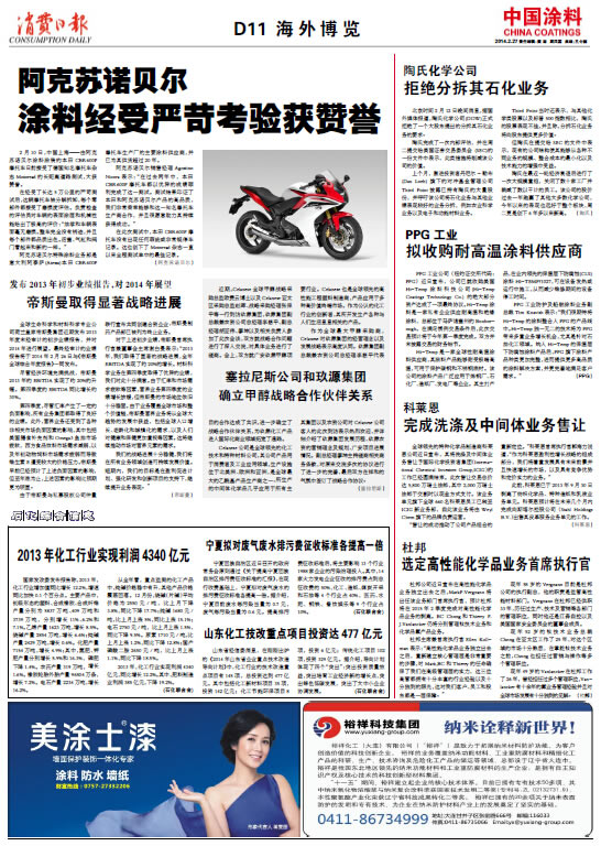 中國涂料報 2014年2月27日 星期四