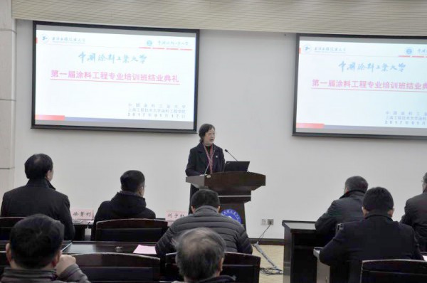 中國涂料工業(yè)大學(xué)校長、中國涂料工業(yè)協(xié)會會長孫蓮英女士為結(jié)業(yè)典禮致辭